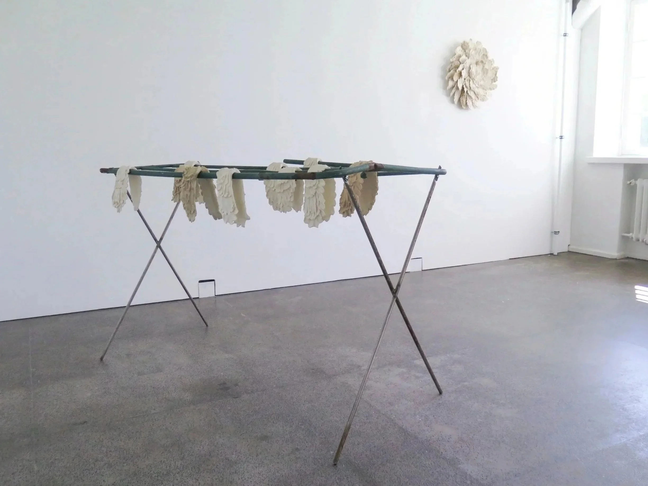 Levolle lasken (en: I lay down to rest) exhibition in Pesula Gallery, Sipoo, consisted of eleven sculptures and one installation. The artworks are built of ceramics, wood, metal and found objects. They form conclusions about the experiences and feelings caused by personal exhaustion, the corona years, and war.