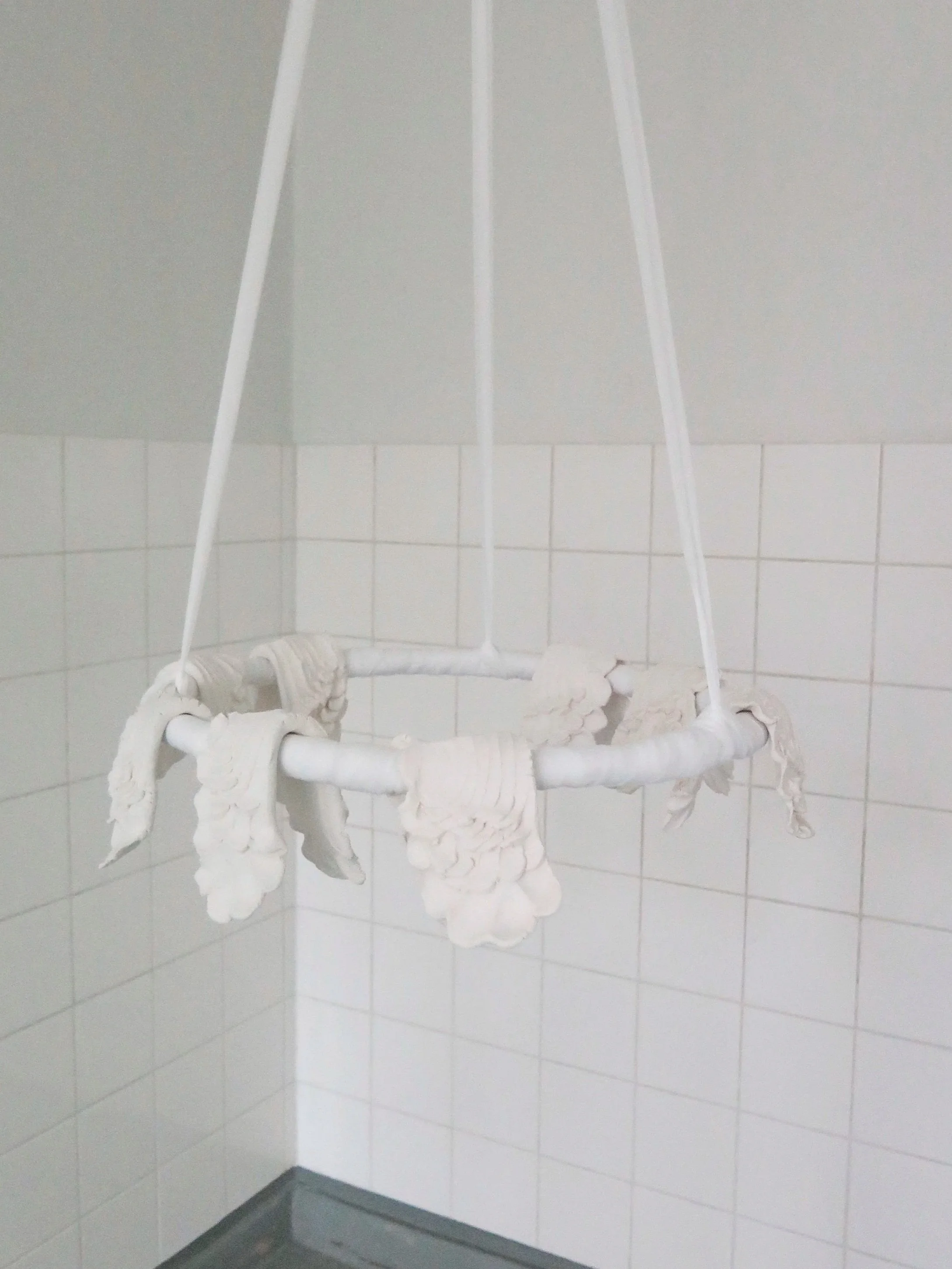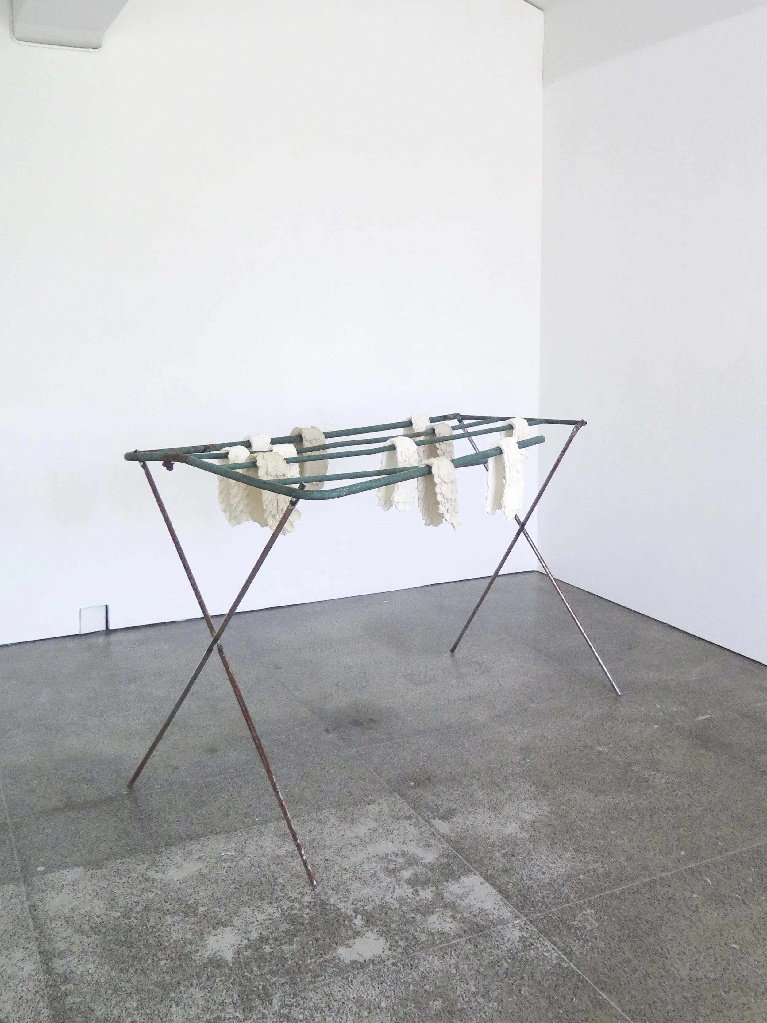 The exhibition continues a series of works, the main focus of which is resting pairs of wings. The first work in the series, the installation Väsyneet / the Tired, was completed in B-gallery in Turku in 2022.